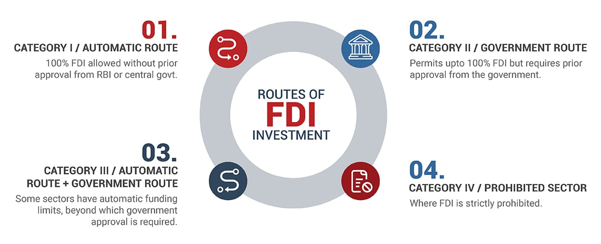 FDI can be made under two routes— Government Route and Automatic Route